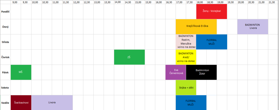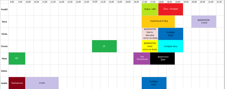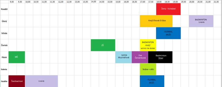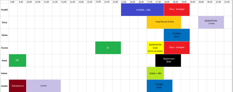 Aktuální obsazení sokolovny lze sledovat v online rozvrhu: sokoltynnadbecvou.cz